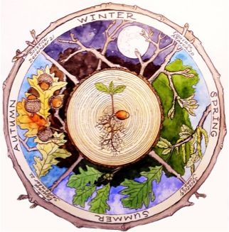 Elementary: Seasonal/monthly wheel. When creating this wheel, you can label the seasons on the outer circle and then have the months on the inner circle, and then have one big circle in the middle. Below is an example of such a wheel. Depending on your child’s age, they could draw the wheel themselves or you could design/print a template for them. Each month you can record what is growing (plants and animals) or what is happening in your environment (ex: wildfire, heavy rain, drought). It is your wheel, you can include what you have noticed or been impacted by the most in the natural world.